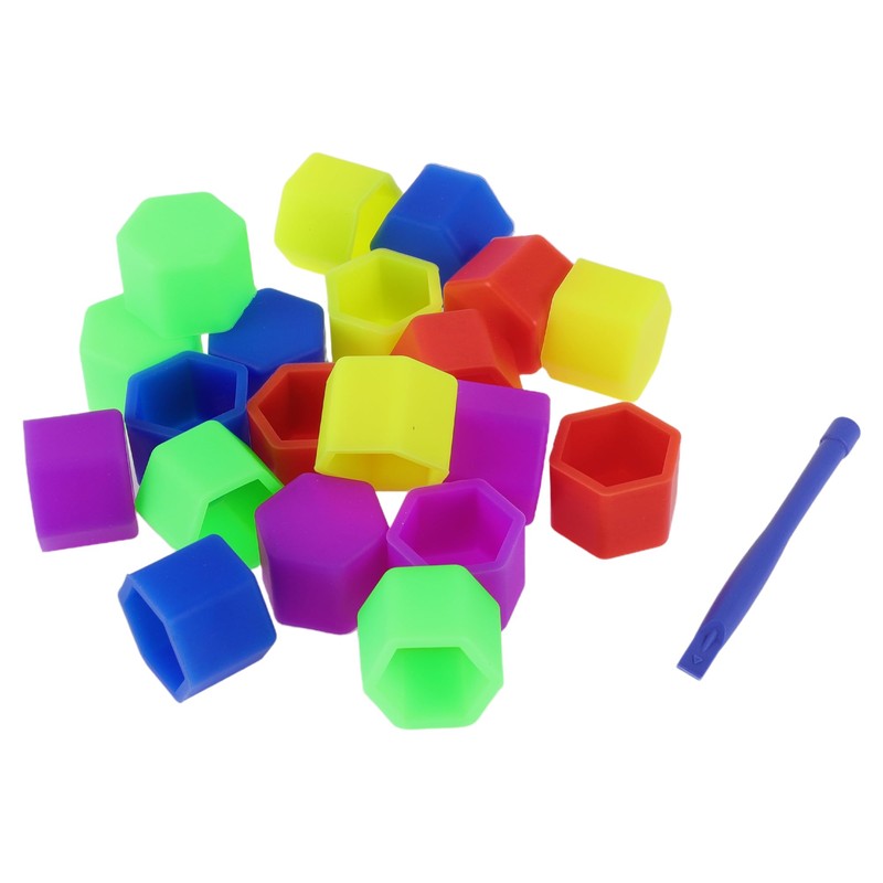 VekAuto Radmutterbolzen 21mm Felgen Reifenmutter Schrauben Staubschutzkappe Abdeckung Mutter Schutz Silikon Bunt Außen mit Entfernungswerkzeug