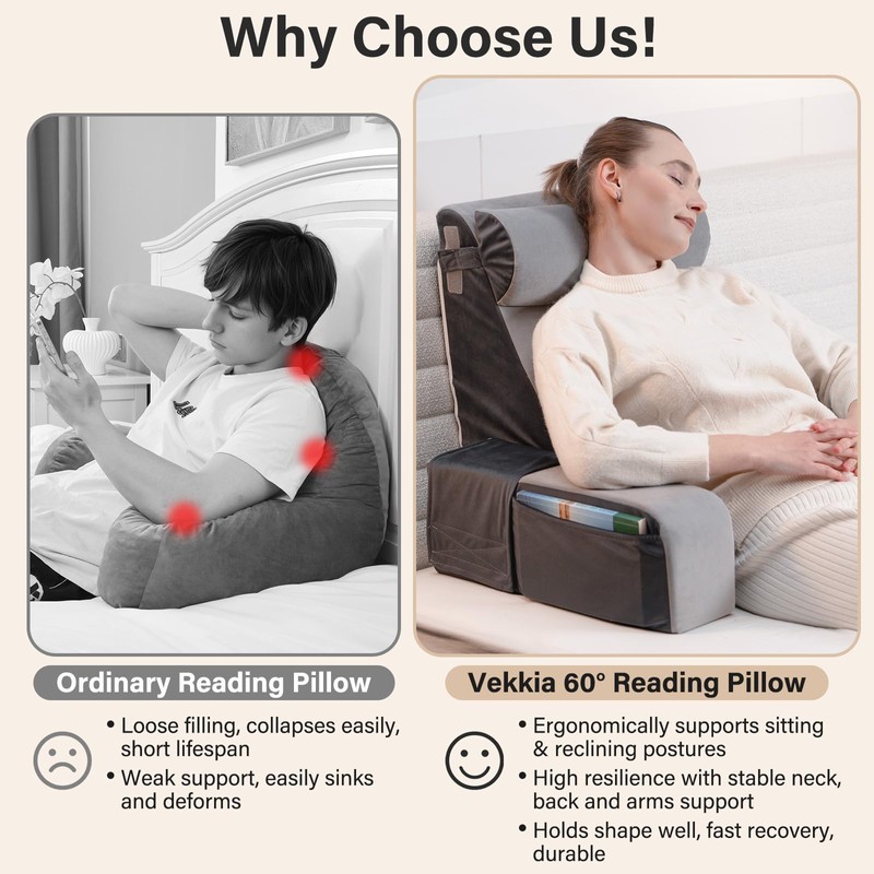 - High-Density Full-Cut Foam for Lasting Comfort and Support:Unlike most competitors that use shredded foam, our reading pillow is made with high-density full-cut foam, providing superior support and long-lasting durability, preventing the sagging often caused by shredded foam