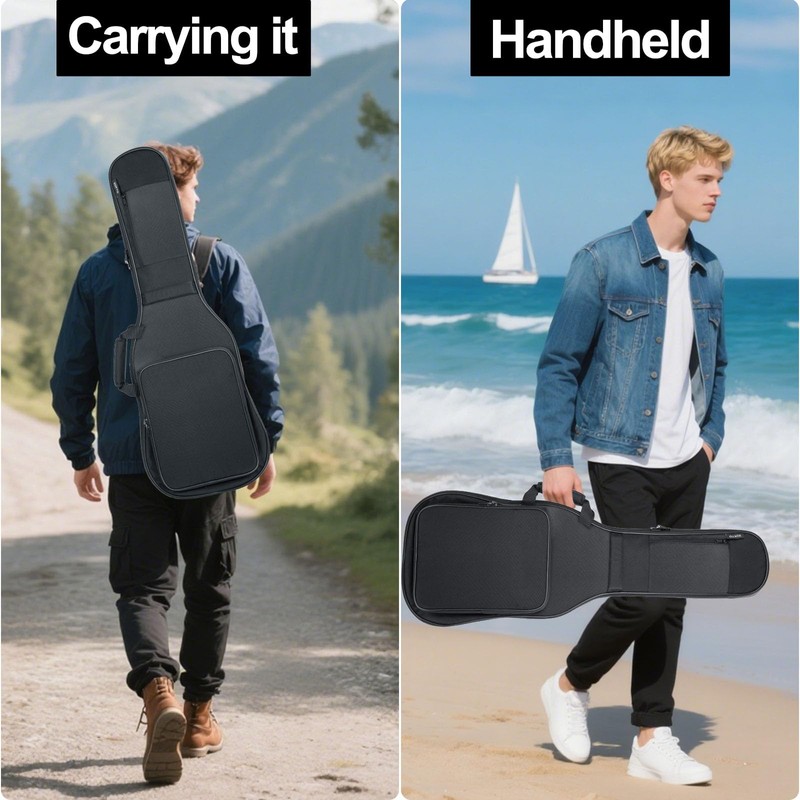 - 🎸Durable Two-Way Zippers for Full Case Access:The soft electric guitar case features smooth, snag-free two-way metal zippers that allow for quick and easy full opening. Built to handle frequent use, perfect for students, commuters, or performing musicians.