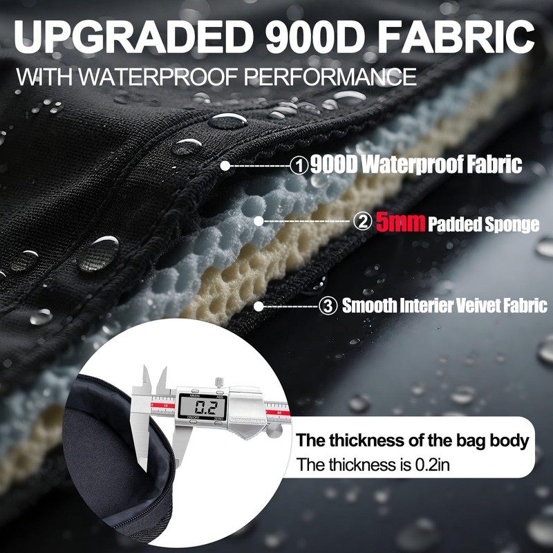 - 🎸Waterproof 900D Fabric with 5mm Thick Padding:Made from heavy-duty 900D waterproof Oxford fabric and padded with 5mm pearl cotton, this guitar backpack case protects your instrument from light rain, bumps, and scratches. The built-in neck support strap helps keep your guitar secure during transport.
