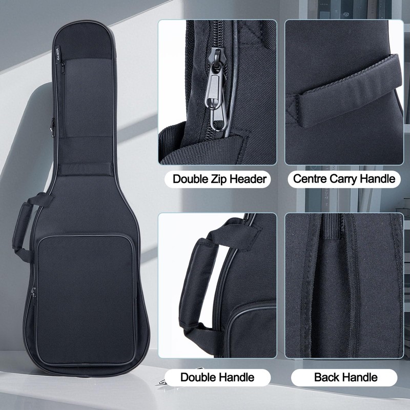 VEKTO Electric Guitar Bag Padded Gig Bag with 5mm Thick Padding, Waterproof Soft Case with Front Pockets, Adjustable Shoulder Straps, Backpack Style, Black