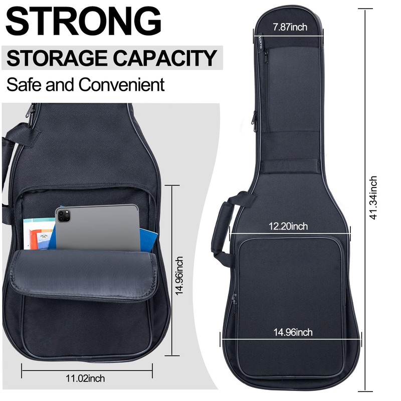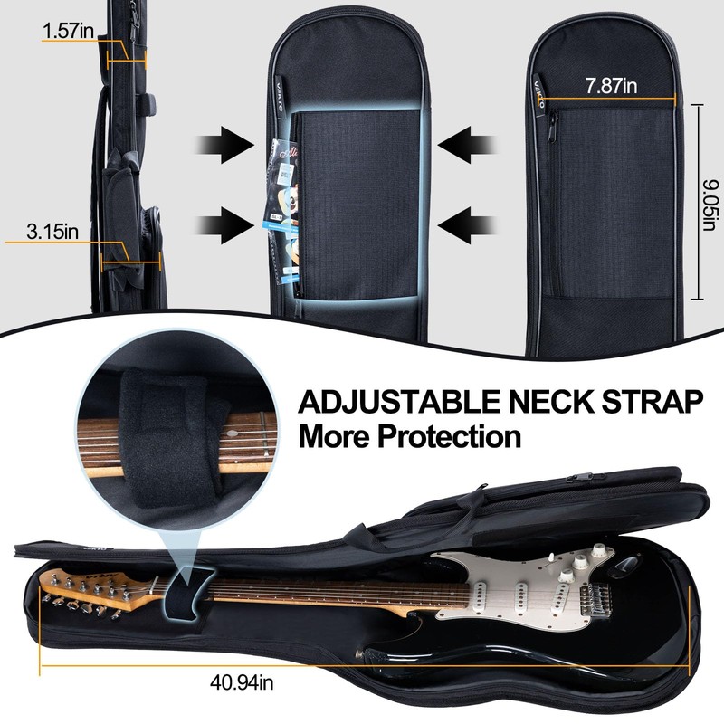 - 🎸Lightweight Portable Gig Bag for Electric Guitar:This padded electric guitar gig bag measures 41.34" x 14.96" x 1.57", with a top width of 7.87" and bottom width of 14.96". It securely fits most electric guitars, making it ideal for everyday use and travel.