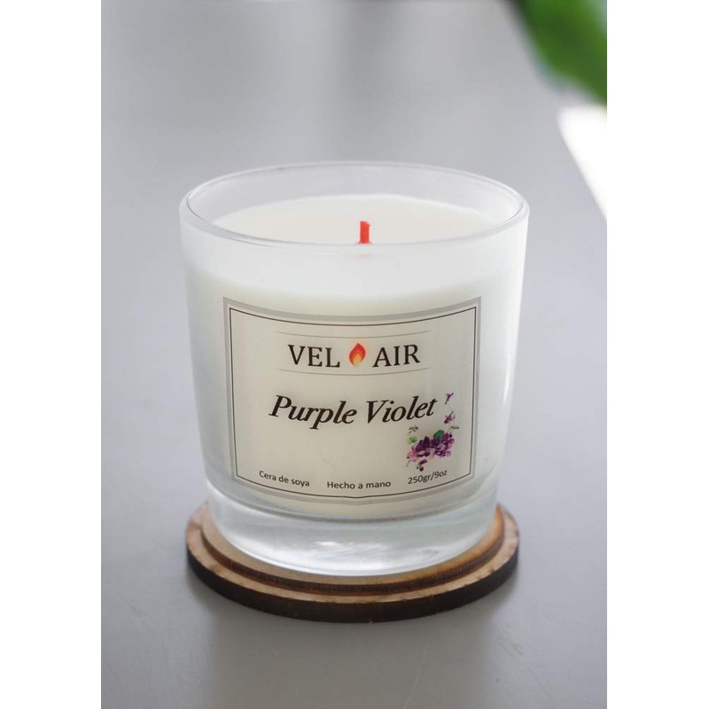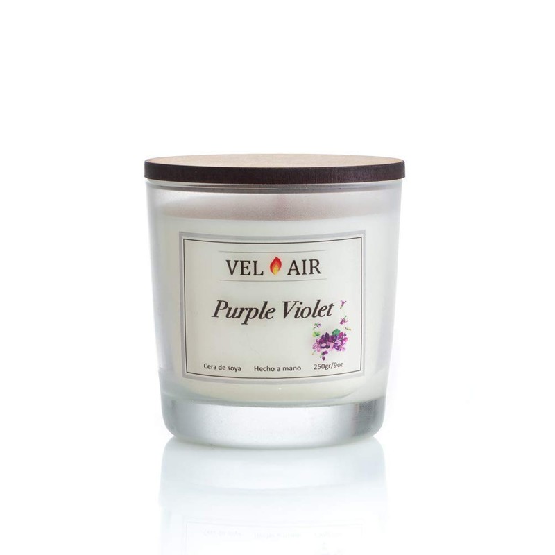 VEL AIR Vela Aromática Purple Violet (Violetas) 250 gr/ 9 oz de cera de soya, Ecológicas, velas Artesanales, Velas Aromáticas, Velas Relajantes, Velas Decorativas