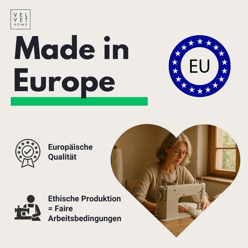 - Safe sleep: VelvetHome bed linen has the Oeko-Tex Standard 100 certificate, which guarantees you and your family a healthy and safe sleep. Our bed linen is made in the EU.