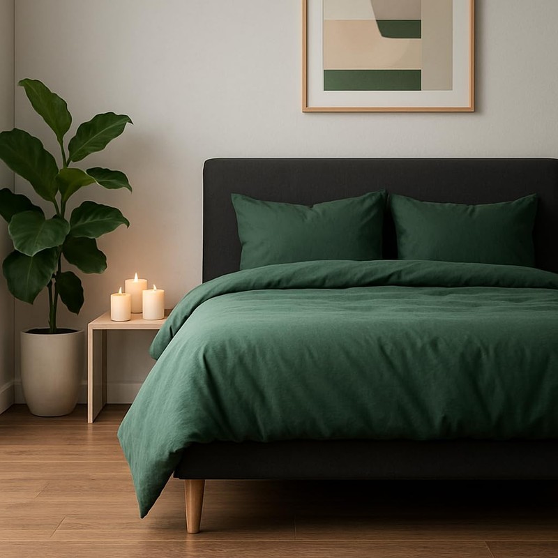 VEL VET HOME VelvetHome Bed Linen 135 x 200 cm Cotton Dark Green Oeko-Tex Made in EU 2-Piece Bedding Sets with Zip 1 x Duvet Cover 135 x 200 cm + 1 x Pillowcase 80 x 80 cm
