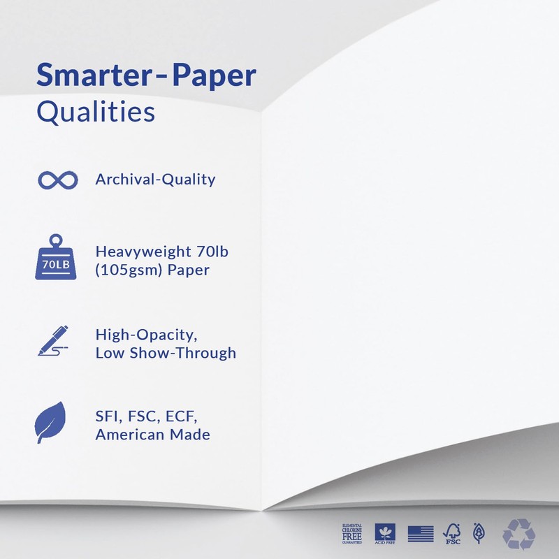 - HEAVYWEIGHT PAPER - 105gsm (70lb/28lb Bond) smooth writing paper, designed to minimize ink showthrough or bleedthrough. We recommend archival-quality type inks for day-to-day use in the lab, especially Copic or Micron felt point pens. (Fountain pen use is highly dependent on ink and tip used, please test before bulk purchase.