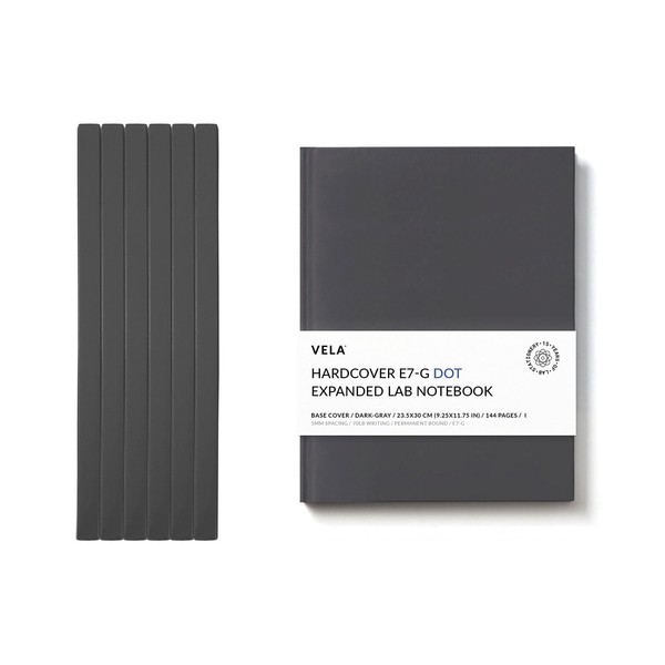 Vela Sciences E7-G Expanded Hardcover Lab Notebook, 9.25 x 11.75 in (23.5 x 30 cm), 144 Pages, Permanent Bound, 70lb Heavyweight Paper (6-Pack, Dot)