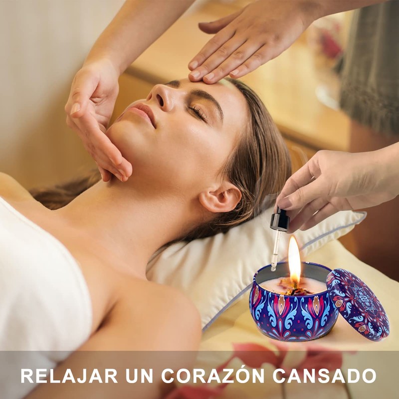 Velas Aromaticas en 4 Latas, Cera de Soja 100% Pura(Por Lata 2.2 Onzas), Aromaterapia,Alivio Del Estrés y Relajación, Adecuado para Yoga, Meditación, Navidad, Día de San Valentín, etc. (4 colores C)