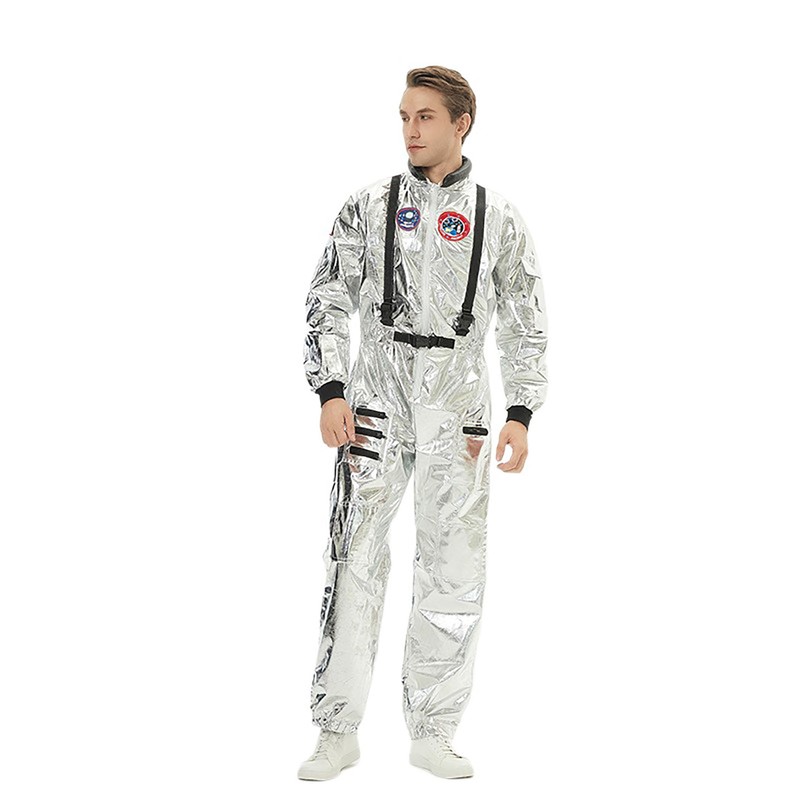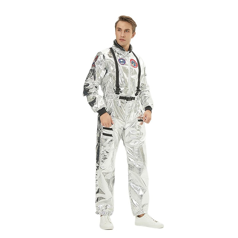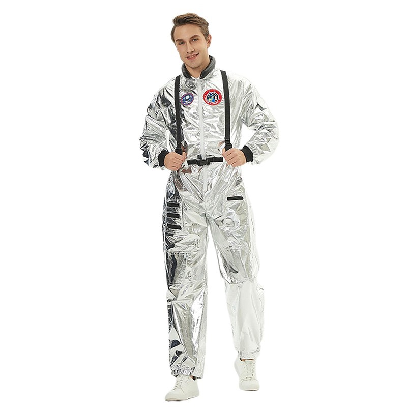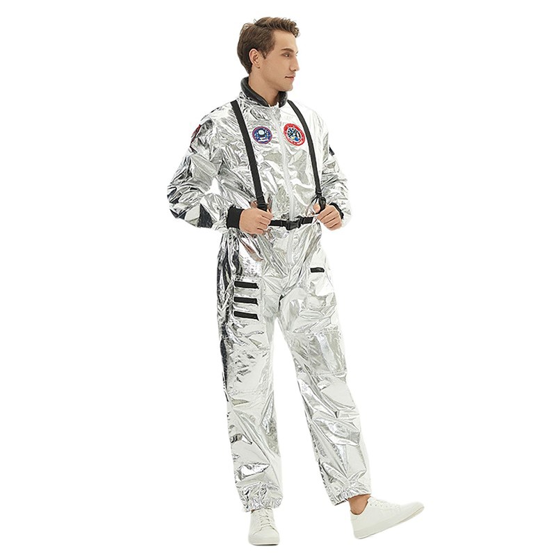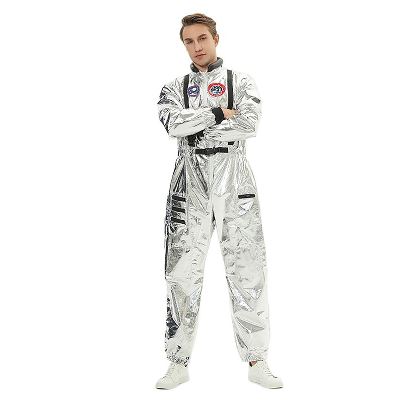 Velcoxplay Men's Astronaut Costume Space Trailer Astronaut Suit Spaceman Jumpsuit Outfit Silver L
