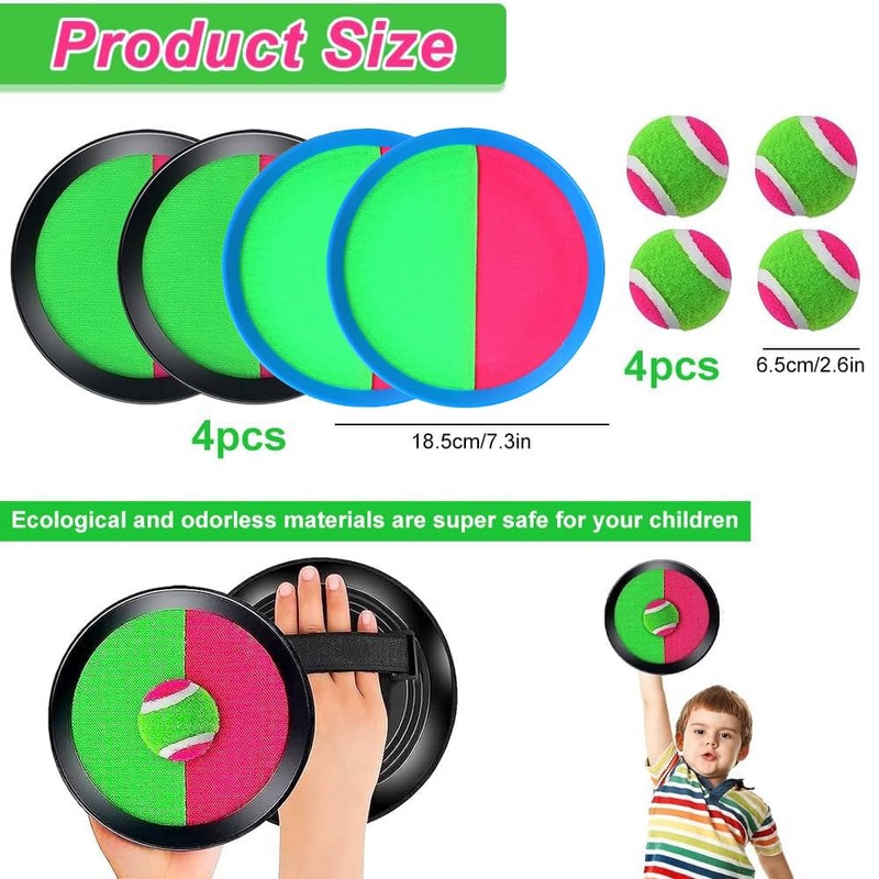 Velcro Ball Game, Catch Ball Game with 4 Catching Discs 4 Balls, Children's Velcro Ball, Velcro Ball Set Beach Game, Children's Fun Outdoor Game, Velcro Ball Game for Children Throwing and Catching