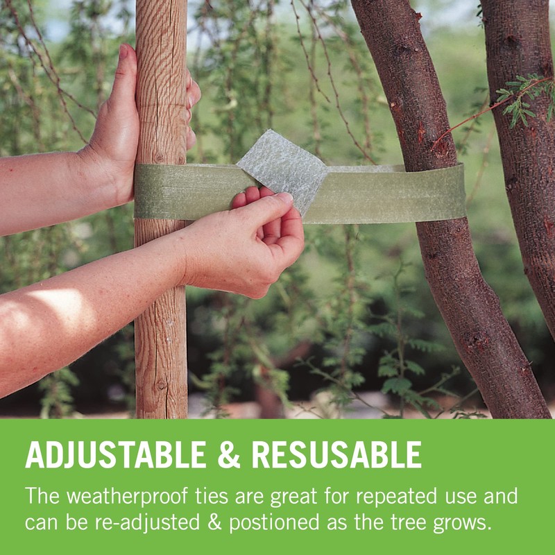 - STRONG YET FLEXIBLE TREE SUPPORT – Secure young saplings safely, soft and wide strap to avoid damaging bark yet strong enough for staking and guying young trees.