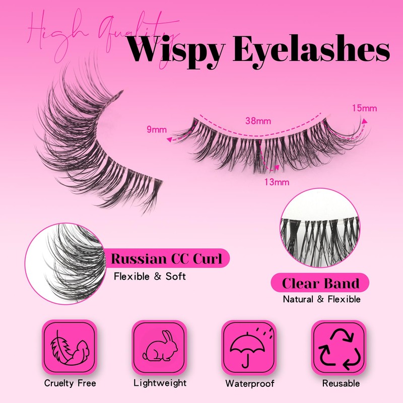 - Invisible Lash Band: Our lashes come with an invisible lash band that complements any eyeliner shade. Crafted from 100% handmade materials, they are both soft and durable. For easier application, gently bend the bands before putting them on.