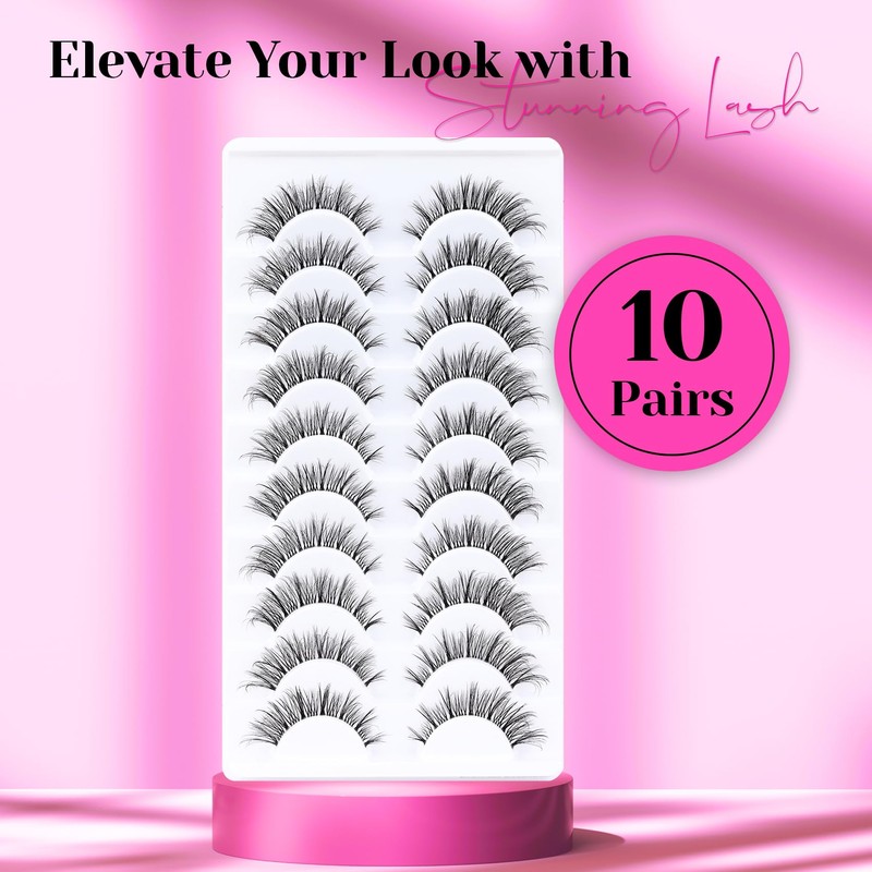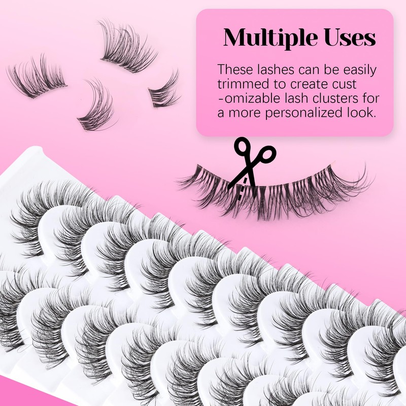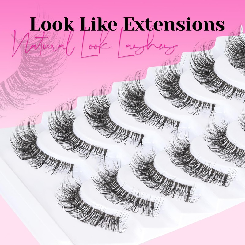 Veleasha Cat Eye Lashes Wispy False Eyelashes with Clear Band Natural Look Eyelashes Looks Like Lash Extensions CC Curl Soft Fake Lashes Strips Lashes 10 Pairs Pack (Everyday Essentials)