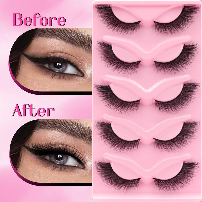 - HIGH QUALITY These soft, natural looking lashes are made from high quality import fibers and blend seamlessly with your own eyelashes. They are easy to apply and are durable as they do not shed. With the five included pairs, you have perfect eyelashes for any occasion.