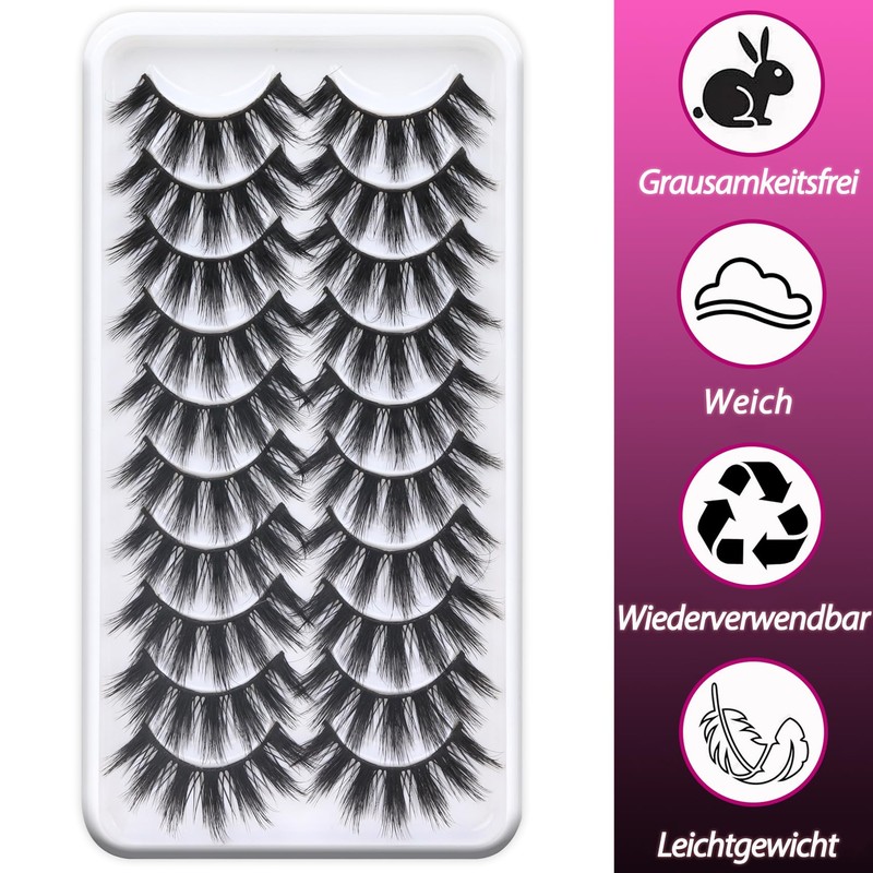 - 10 Paar Nerzwimpern im Multipack, kostengünstig (Pinzette und Kleber nicht enthalten)