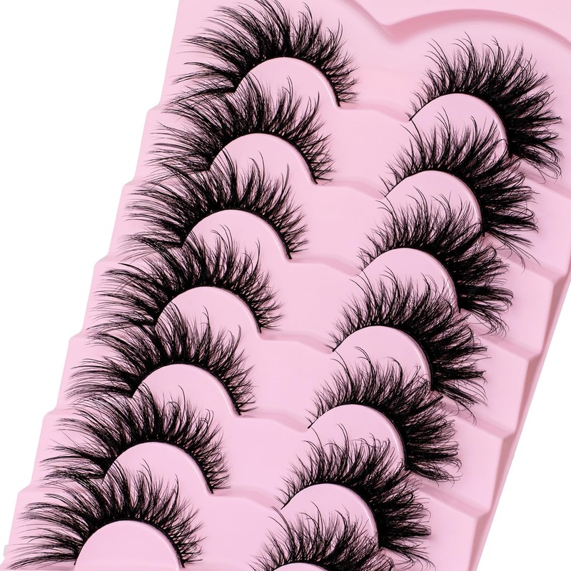Veleasha Lashes Kit with Glue & Tweezer Cat Eye Lashes that Look Like Extensions Fluffy Faux Mink Lashes Wispy Fox Eye Lashes Natural Look 7 Pairs Fake Eyelashes Pack (Cat Eye) | Veleasha