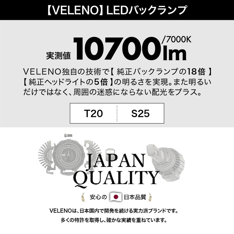 VELENO T20 LED Back Lamp with Delay Function, 10,700 lm, Exceeds Headlight, Ultra Explosive Light, White, Retrofitable, Wedge Ball, Reverse Light, Patent Pending, Vehicle Inspection Compatible, 12 V