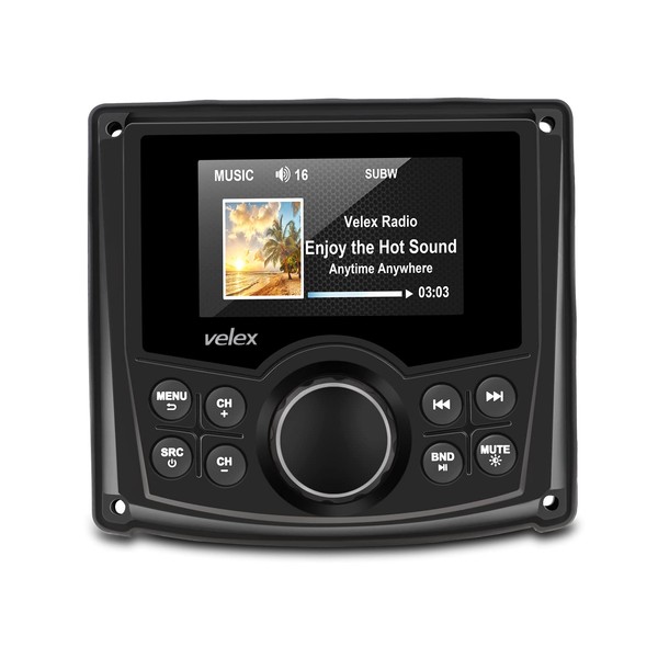 VELEX Marine Stereo, Audio Video Player FM/AM with Bluetooth Streaming, for Yacht, Boat, UTV, ATV, Power Sport, Spa