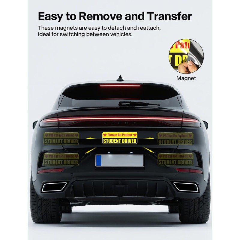 - Reflective Magnets: Made of high quality strong magnet, more sturdy and durable. Provides maximum visibility during the day and night for novice drivers