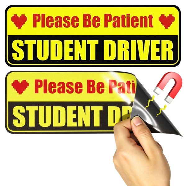 Velluppa 2PCS Student Driver Magnet for Car, Please Be Patient Student Driver Sign, Reflective Weather-Resistant Rectangular Sticker for Car