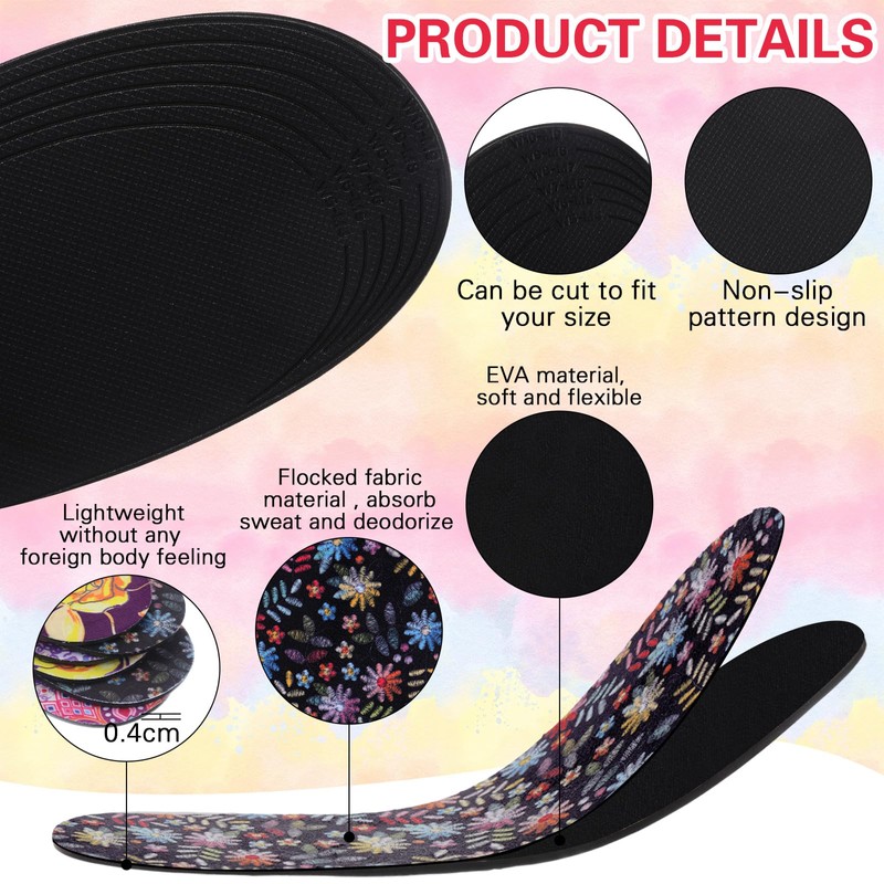 - Quality Materials: our washable barefoot shoe insert is made of soft flocked fabric and high elastic eva, the insole is soft and wear resistant with elasticity, the experience is comfortable when you wear it, breathable, with sweat absorbent function, won't stink your feet, and it can meet your daily activity