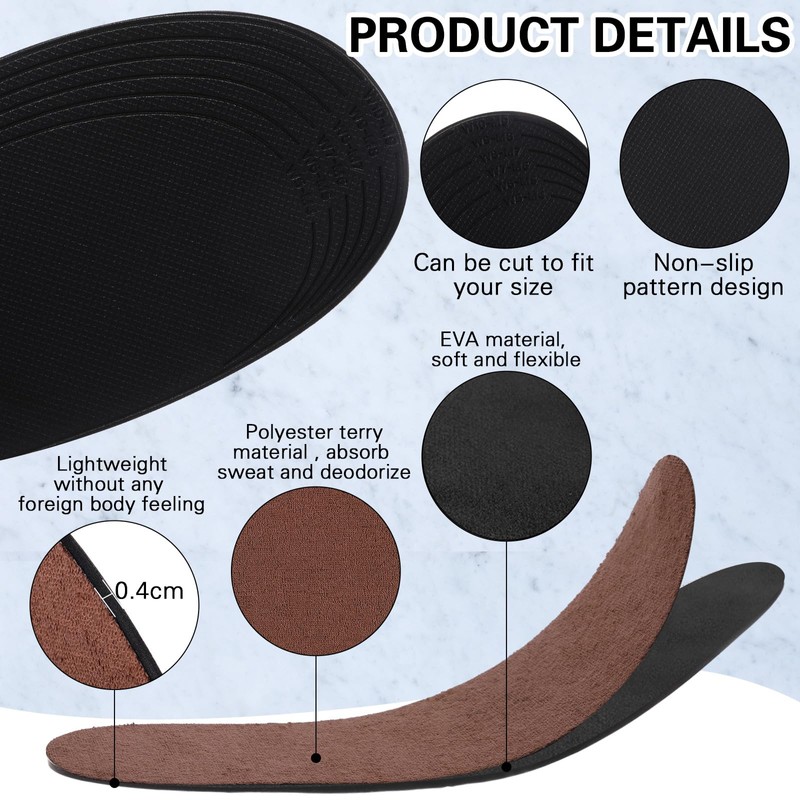 - No Slip and No Show: the back of the insole is made with a checkered biting process, which increases friction and has a non slip effect, and the thickness is about 0.15 inch/ 0.4 cm, so it won't be exposed to keep it beautiful