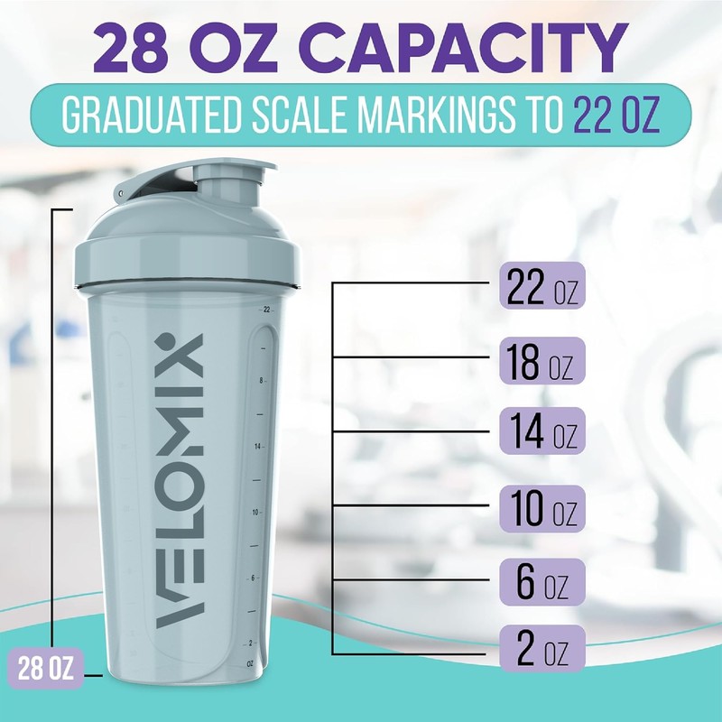 - CLEAN IN A JIFFY - Velomix bottle shaker protein design is for the on-the-move individual. A swift rinse and you're set for another round! More time savoring, less time scrubbing.