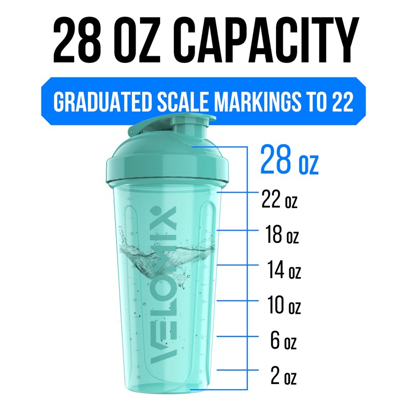 VELOMIX -6 PACK- 28 OZ Protein Shaker Bottles for Protein Mixes, Shaker Cups for Protein Shakes, Small Shaker Bottle Pack, Shaker Cup, Shakers for protein Shakes (Most Popular)
