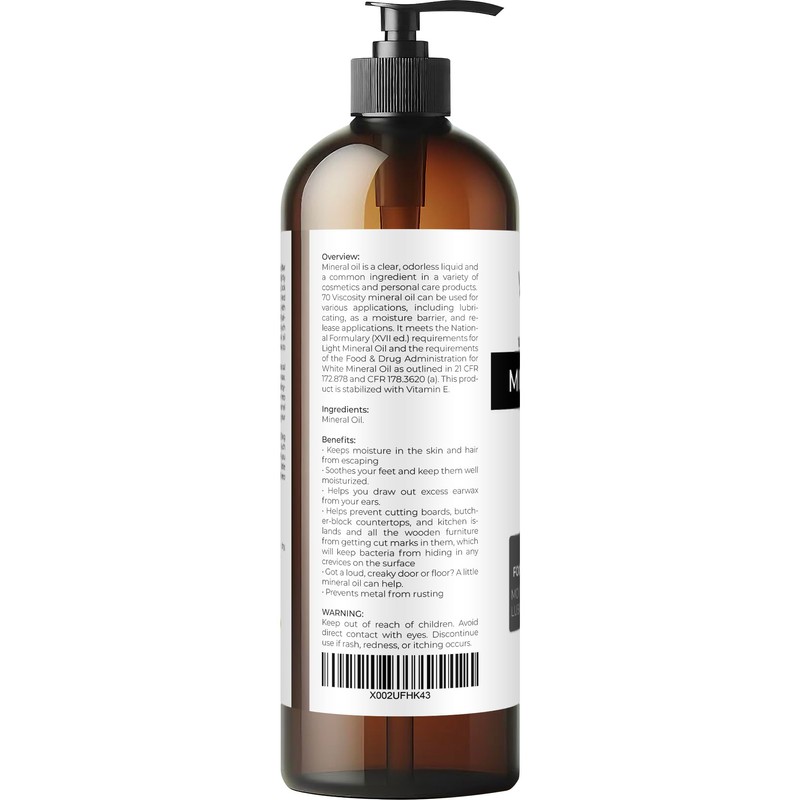 - Mineral Oil 70: 100% Pure and Natural Carrier Oil. Lubricant Pure. Not Diluted, Non-GMO, No Additives, No Fragrance, Chemical Free, Alcohol Free.