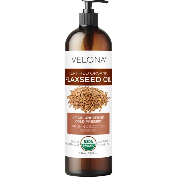 - Velona USDA Certified Organic Flaxseed Oil: 100% Pure and Natural Carrier Oil. Unrefined. Cold Pressed. Not Diluted, Non-GMO, No Additives, No Fragrance, Chemical Free, Alcohol Free.