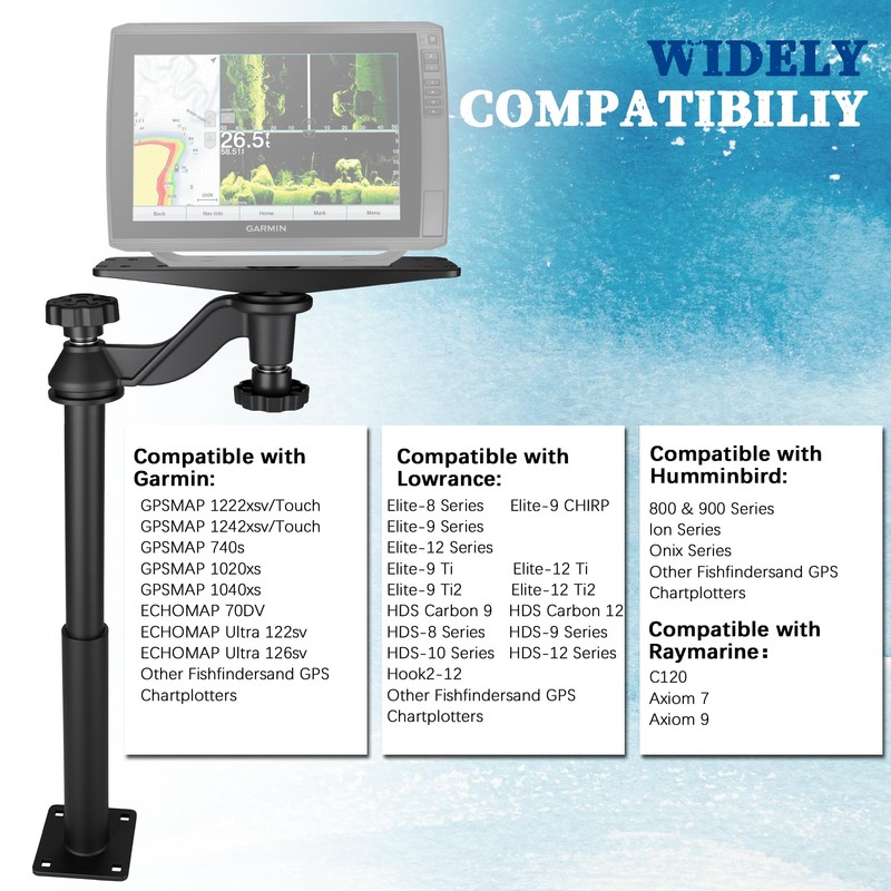 - Convenient Height Adjustment: The Velpaw Fish Finder Mount features a telescoping riser that is freely adjustable from 14.68" to 20.7" inches, and a dual-axis swivel that allows for smooth 360° adjustments for optimal viewing from a variety of positions