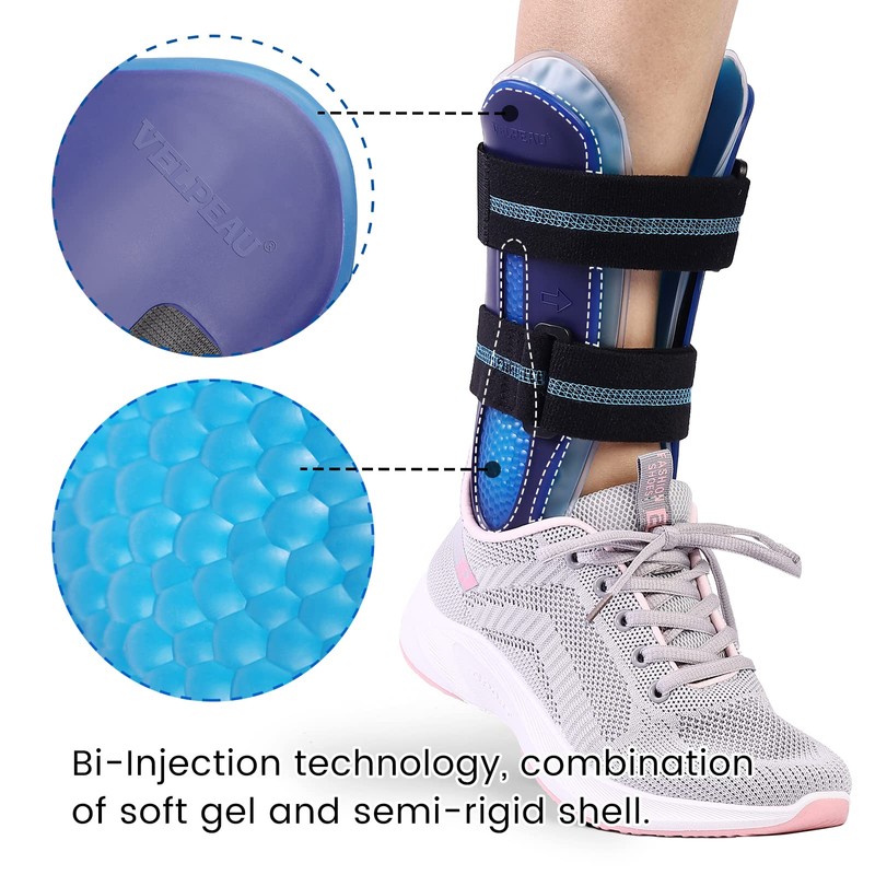 VELPEAU Ankle Support Brace for Men & Women, Adjustable Rigid Stabilizer for Injury Protection, Stirrup Splint for Sprains, Tendonitis, Volleyball, Basketball, Reversible Left & Right Foots, One Size Fits Most(Gel Pads)