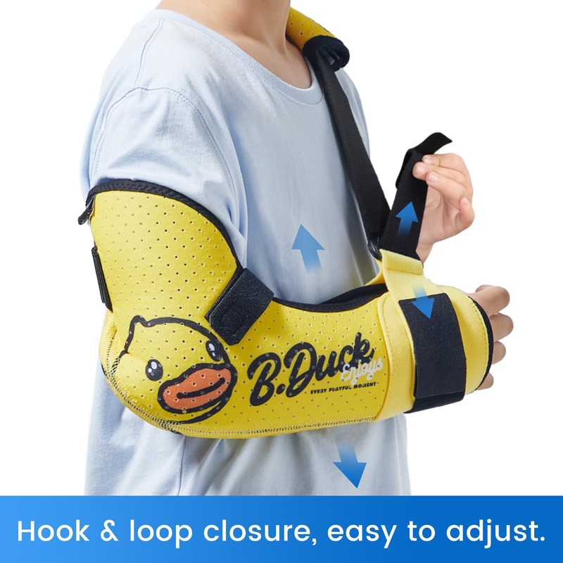- 【Comfortable Design】The Cartoon Duck Print Child Arm Sling is crafted with air vent holes and sponge-filled three-layer breathable material to ensure comfort, softness, warmth, and breathability. The adjustable straps provide personalized support, catering to children’s needs. It features adjustable arm hanging angles, hand grip straps, and thumb loop to effectively prevent hand fatigue, enhancing overall comfort during wear.