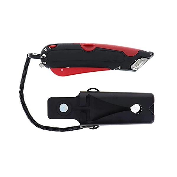 Veltec EZ-2000 Safety Box Cutter Utility Knife, Tape Splitter at Back, 3 Blade Depth Setting, Squeeze Trigger and Dual Side Edge Guide, 2 Blades (Red)