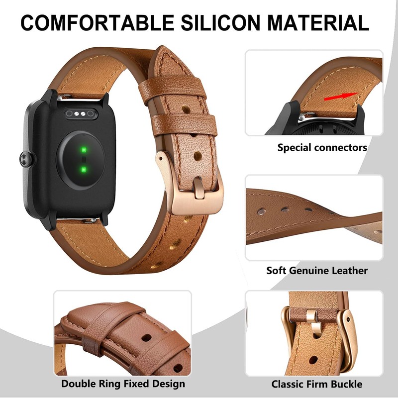 These replacement straps are made of skin-friendly genuine leather material, lightweight and breathable, no irritation or allergy to the skin.