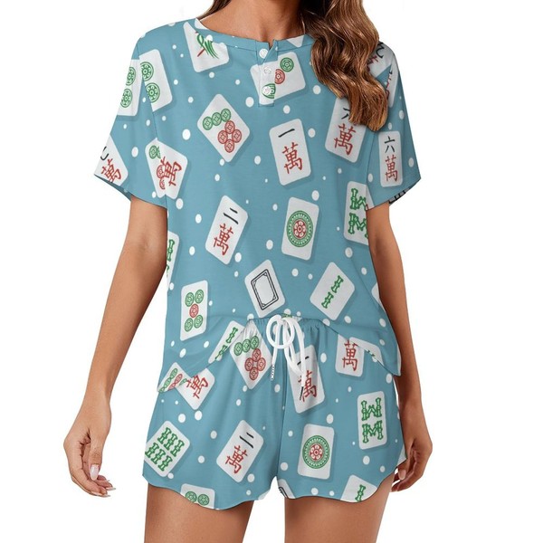 velumair Chinese Mahjong Womens Pajama Sets Shorts Sleeve Sleepwear Soft Lounge Sleep Set Pj Set with Pockets