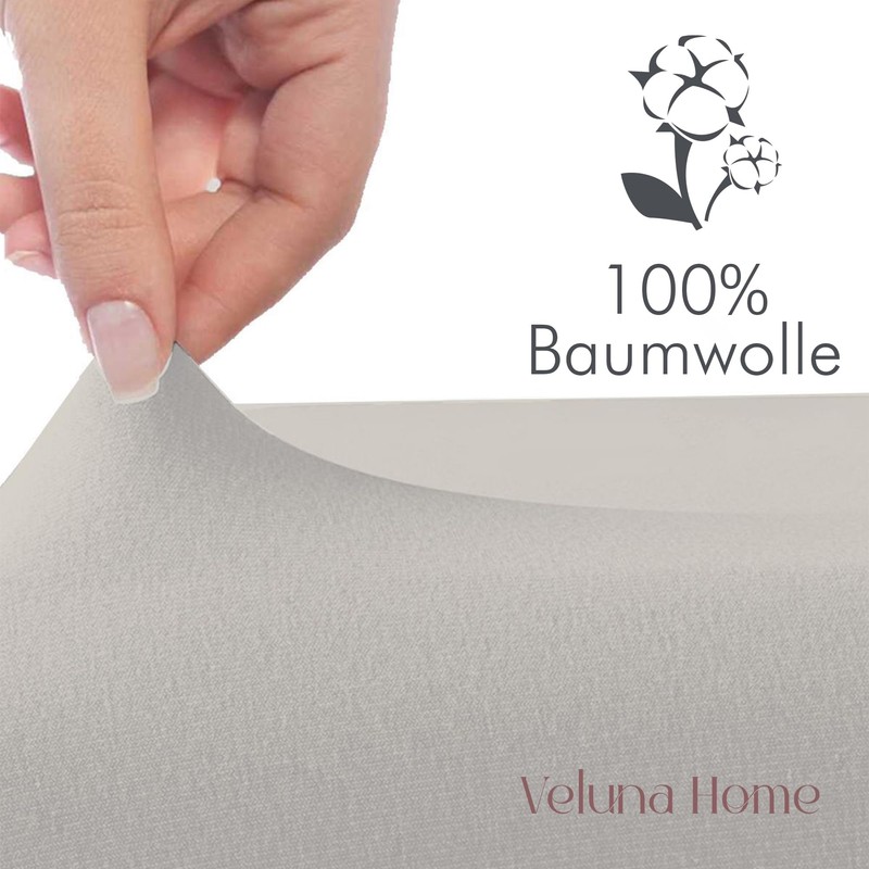 Veluna Home Premium Fitted Sheet 180 x 200 cm - Light Grey - 100% Cotton Fitted Sheet 150 g/m², Oeko-Tex Certified, Jersey Flat Sheet, Fitted Sheet, Mattress Height up to 30 cm