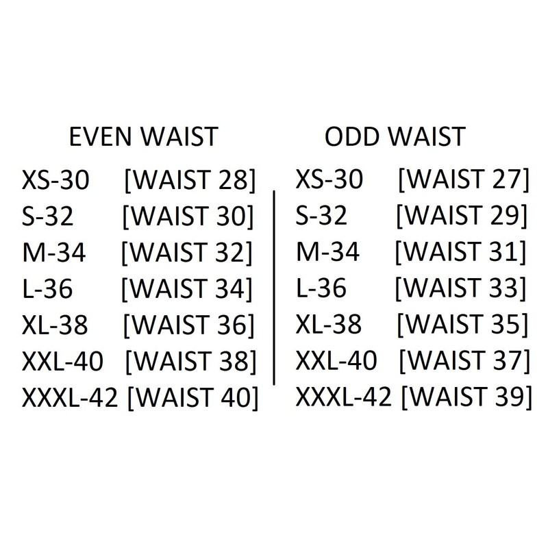 - S32(WAIST 30) M34(WAIST 32) L36(WAIST 34) XL38(WAIST 36)