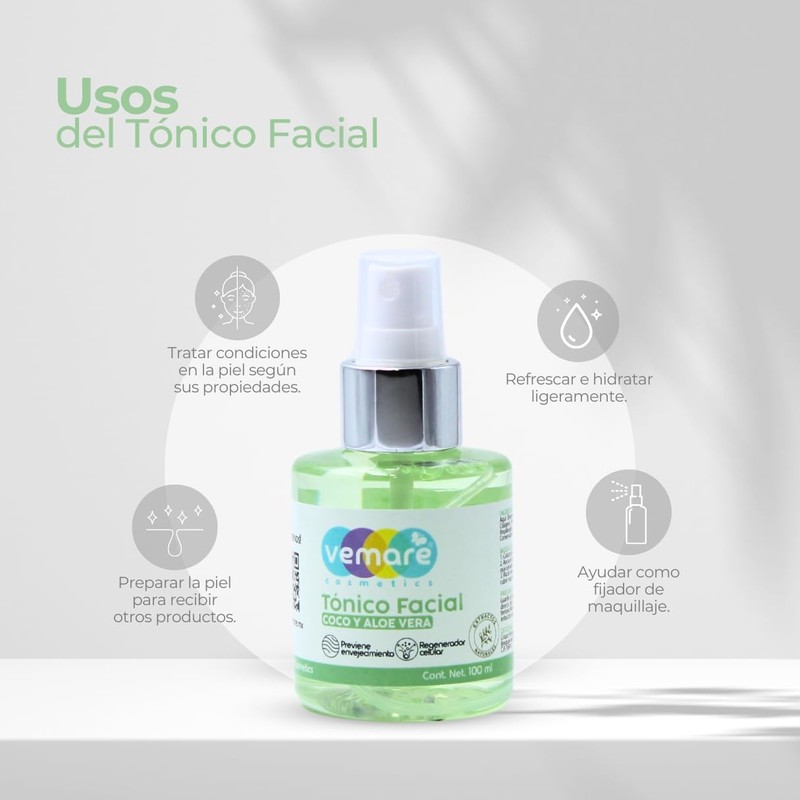 Vemare Cosmetics Tónico Facial De Coco Y Aloe Vera Calmante 100 ml