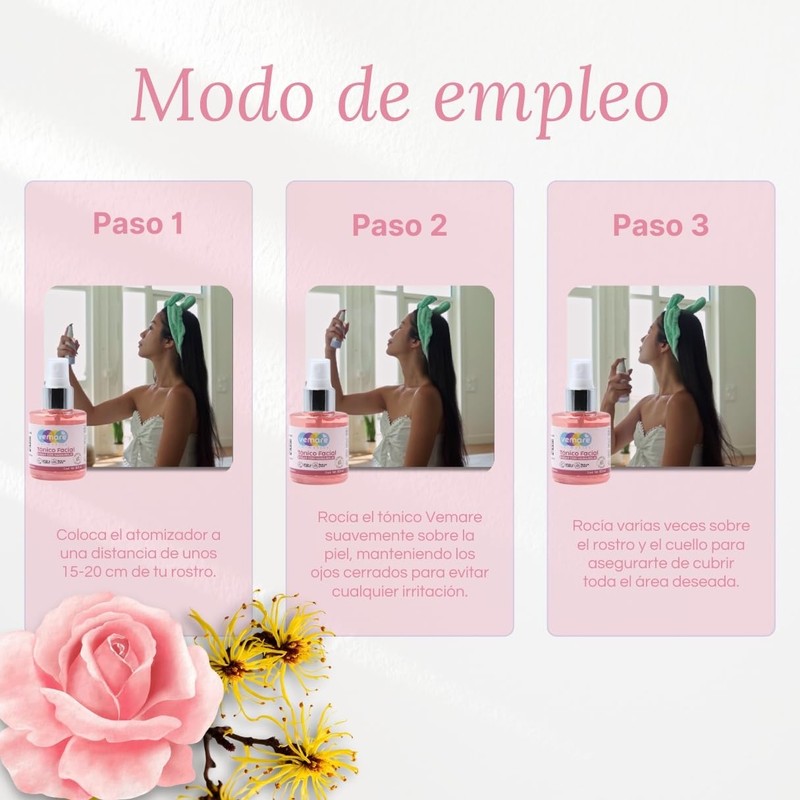 Vemare Cosmetics Tónico Facial De Rosas Con Hamamelis Hidrata 100 ml