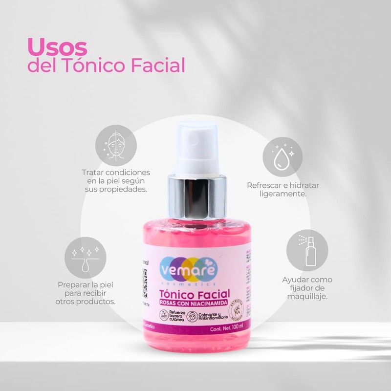 Vemare Cosmetics Tónico Facial De Rosas Con Niacinamida Repara 100 ml