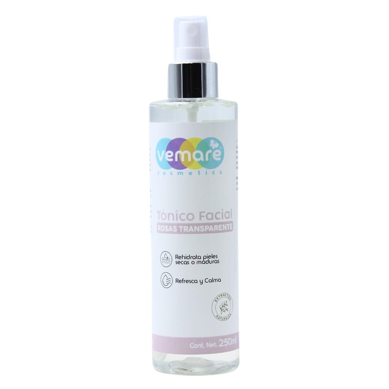 Vemare Cosmetics Tónico Facial Rosas Transparente Cuidado Suave 250 ml