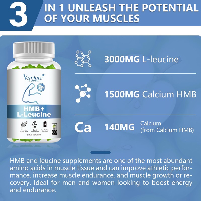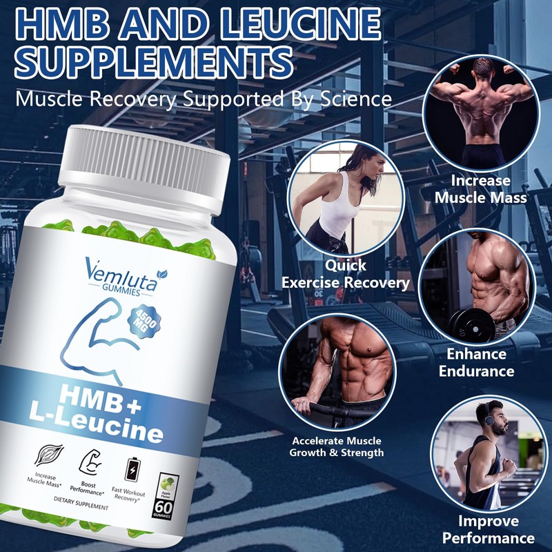 Vemluta 2 Packs HMB and Leucine Supplements Gummies for Men, Women - 4500MG, HMB & Leucine for Muscle Recovery & Growth Support, Non-GMO, Gluten-Free, Adults & Elder, Apple Flavor, 120 Counts