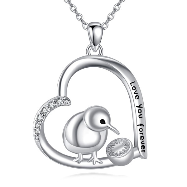 VENACOLY Kiwi Bird Necklace 925 Sterling Silver Kiwi Bird Pendant Jewellery Gifts for Women Kiwi Bird Lovers, Sterling Silver