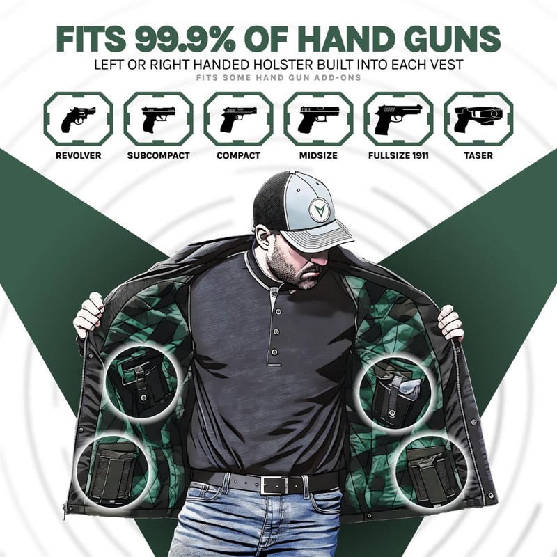 - Fits Most Guns and Tasers: Interior holsters fit most sub-compact to full-size handguns, and tasers ensuring secure carry and effortless access. Right or left-hand draw; exercise your right with our concealed carry design.