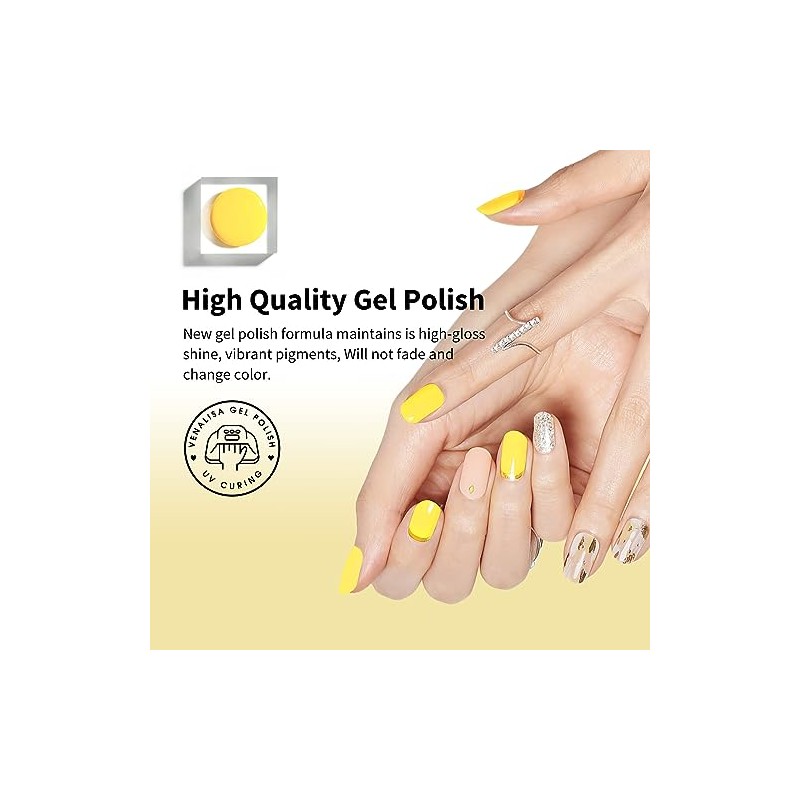 VENALISA UV Nagellack Gellack Gelb farben,Gel Nail Polish Soak Off Nägel Farbgel Kit Yellow Gel Nagellack für Nageldesign Maniküre 12ml