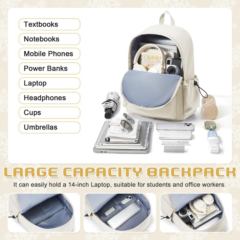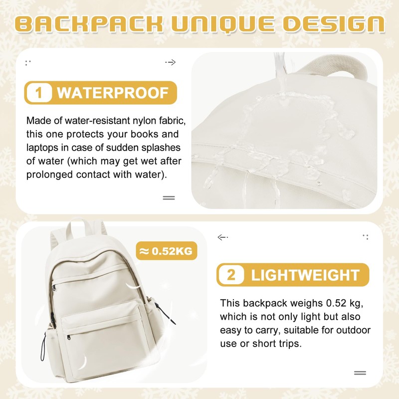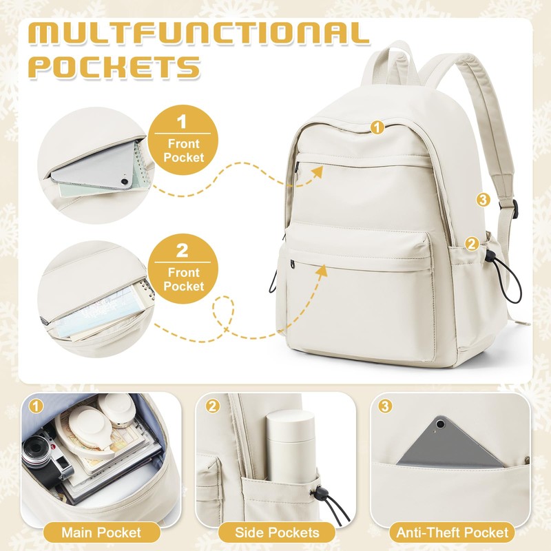 VENATIN School Backpack for Women Men, Waterproof Lightweight College Bookbag Laptop Backpack Travel Rucksack Casual Daypack Backpacks Middle High School Bag for Teen Girls Boys, Beige