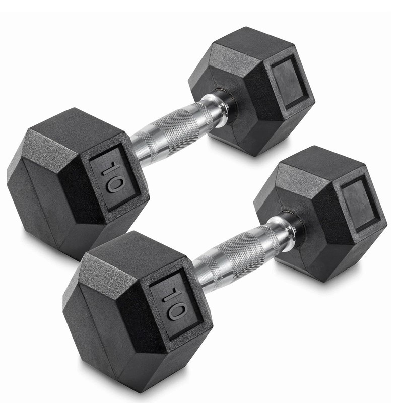 - For 10 lb Pair Rubber Coated Hex Dumbbell Set, 20 Pounds Total