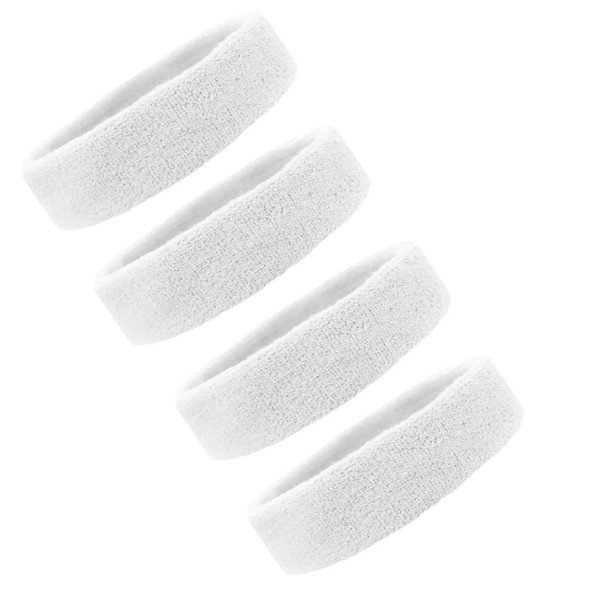 Venbytech for 4 White Terry Sweatband Cotton Headbands Absorbent Workout Quality Sport Bands