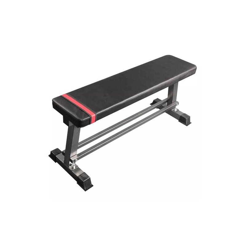 - Flat weight bench with builtin dumbbell rack, ideal for strength training at home or in the gym. Supports various exercises for a fullbody .